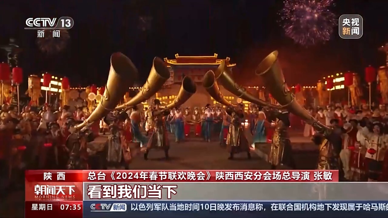 总台《2024年春节联欢晚会》陕西西安分会场总导演 张敏:创作理念就是让一个千年前的诗人,通过他的视角穿越千年来到当下,看到我们当下的西安,除了我们传统的文化,还有这么时尚、盛大的独有的特色。