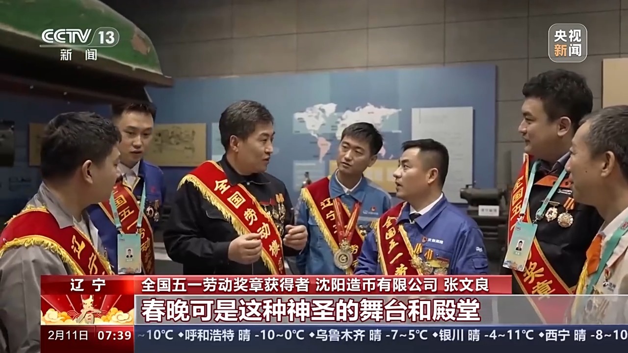 全国五一劳动奖章获得者、沈阳造币有限公司 张文良:我自己也没想到,我作为一名钳工我能上春晚,其实我们大伙一直在心里想,春晚可是这种神圣的舞台和殿堂,也是想要更好表达出我们沈阳人或者产业工人的热情。