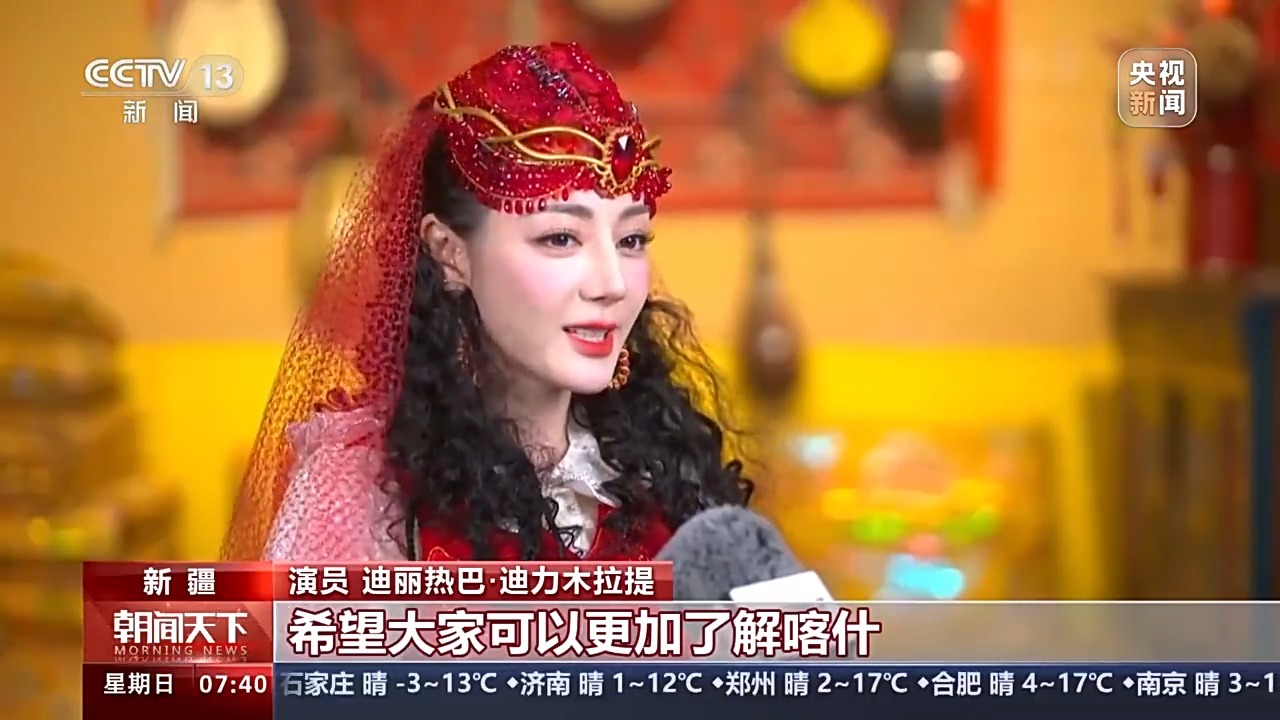 演员 迪丽热巴·迪力木拉提:最想给大家展现的是喀什的魅力,当然我也非常开心,春晚可以在喀什举办。我也可以借机回到家里,跟家里人一起过个欢乐的节日。希望大家可以更加了解喀什,更加了解当地的美食也好,还是我们的这些景点。