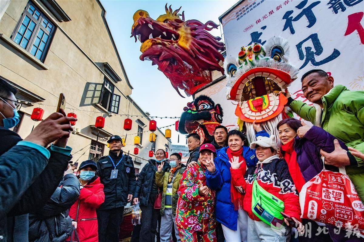 锣鼓齐鸣、龙狮欢舞,大年初一,武汉雪霁初晴,两江四岸尽展龙年新气象。