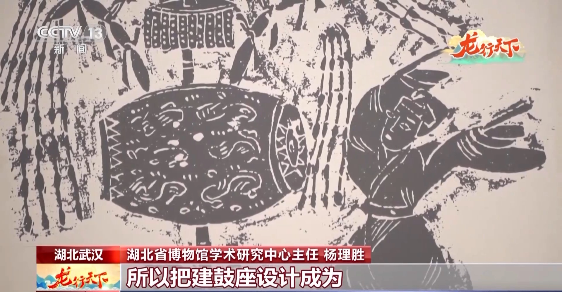 湖北省博物馆学术研究中心主任 杨理胜:鼓代表春天之雷,雷声起而蛰虫复苏。所以把建鼓座设计成为一个龙蛇的造型,上面有鼓的话,其实是代表一个春天阳气萌发了,万物复苏的感觉。因为鼓声一响,这个龙就惊醒了,就不再冬眠了。这个是代表冬去春来、百业兴旺的一种状态,给人一种非常澎湃的动力。