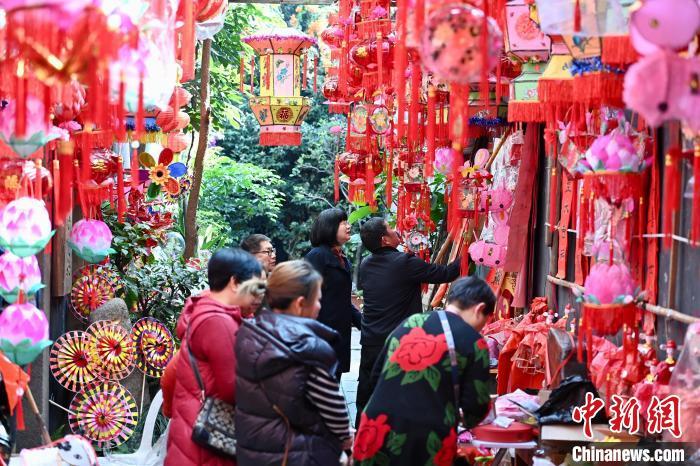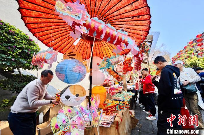 游客在三坊七巷古街区购买新年饰品。中新网记者王东明摄