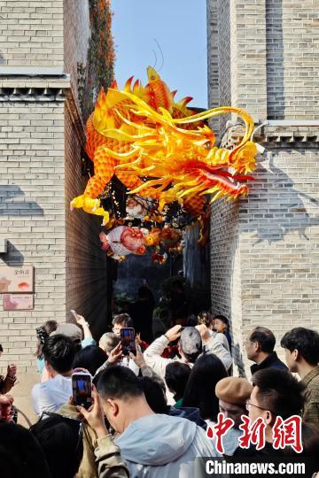 龙形灯饰点亮新春氛围。 中新网记者 王东明 摄