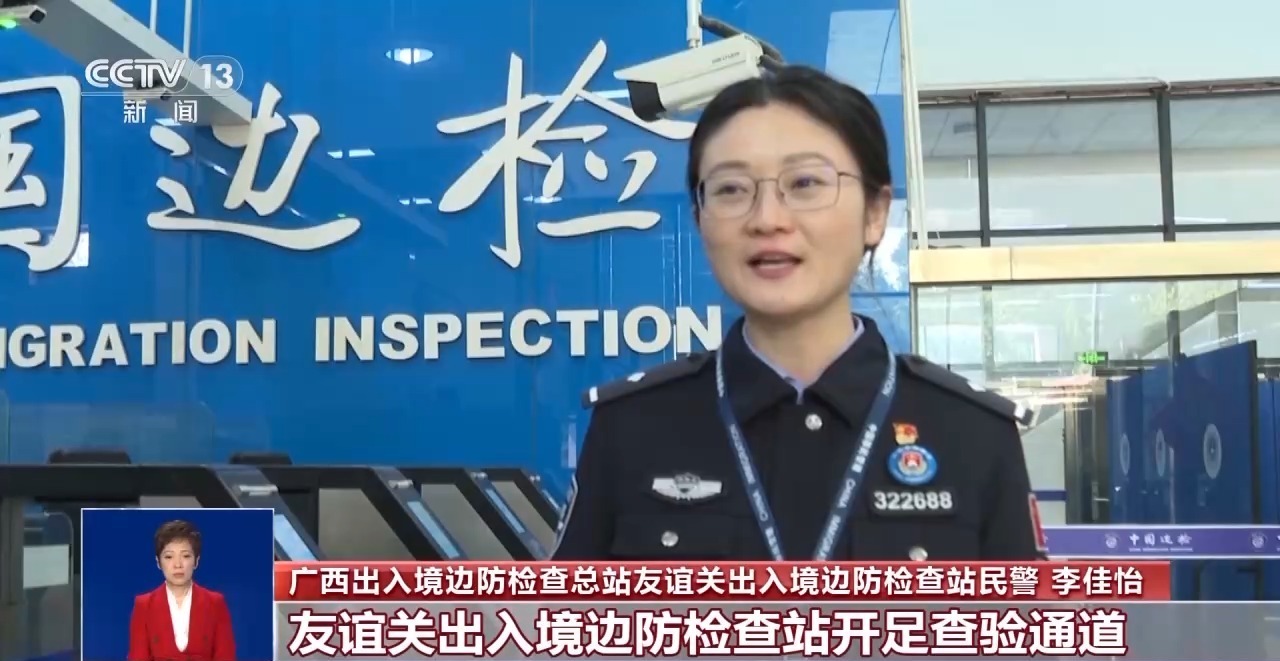 广西出入境边防检查总站友谊关出入境边防检查站民警 李佳怡:友谊关出入境边防检查站开足查验通道,设置专用通道,提供“一站式”便捷通关服务,确保通关安全高效顺畅。