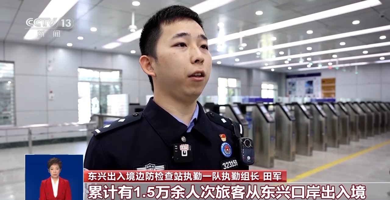东兴出入境边防检查站执勤一队执勤组长 田军:除夕到大年初二期间,累计有1.5万余人次旅客从东兴口岸出入境。