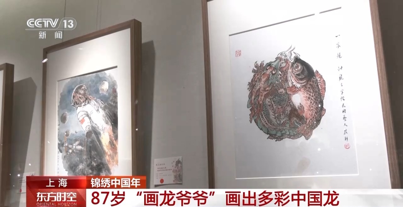 今年是龙年,87岁的国画家戴敦邦耗时5个月,创作了一幅5条神龙腾飞于上、足有5米多长的巨幅通景屏,并创作了一组和龙有关的典故、风俗与俚语的绘画故事,这几天正在上海展出。