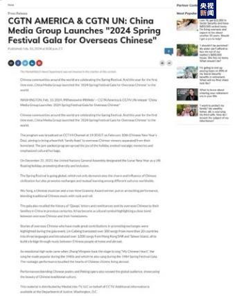 2月10日,农历大年初一,由国务院侨务办公室、中华全国归国华侨联合会主办,中央广播电视总台华语环球节目中心承办的《2024年“四海同春”全球华侨华人春节大联欢》节目播出,这是中央广播电视总台首次面向全球推出的“华侨华人春节大联欢”。