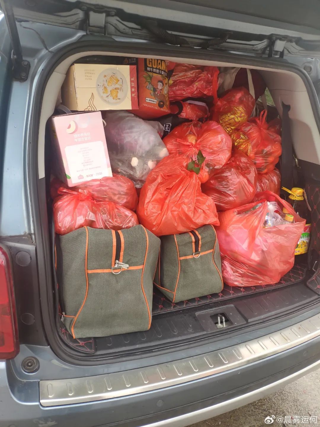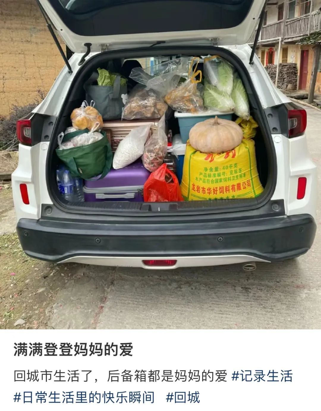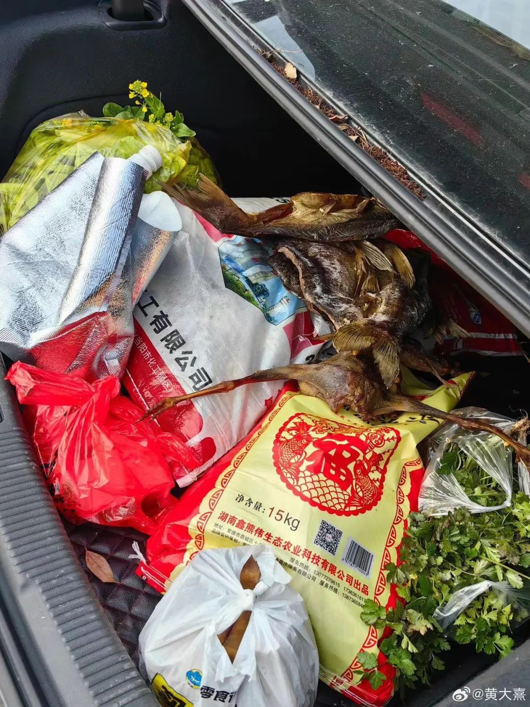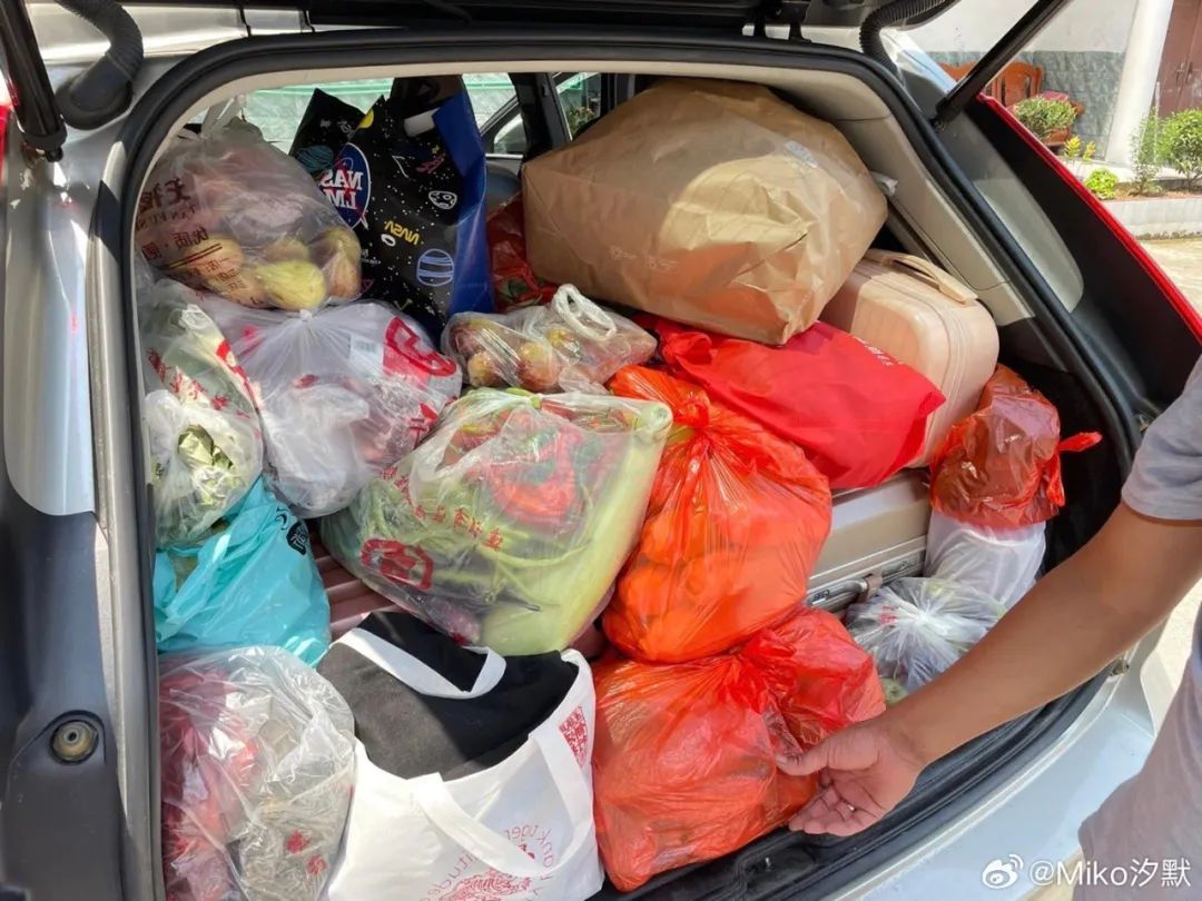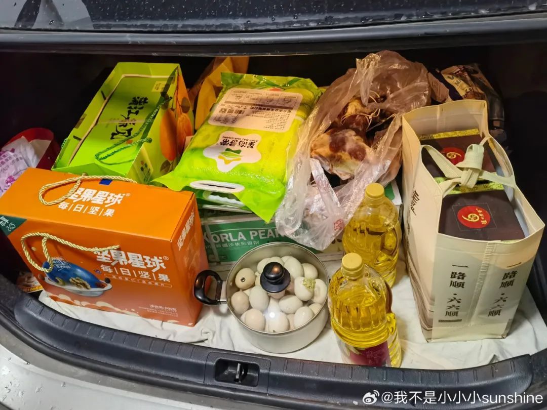 不仅把鸡鸭鱼和蔬菜塞满后备箱