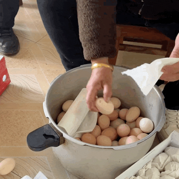 把一个个鸡蛋细心包好