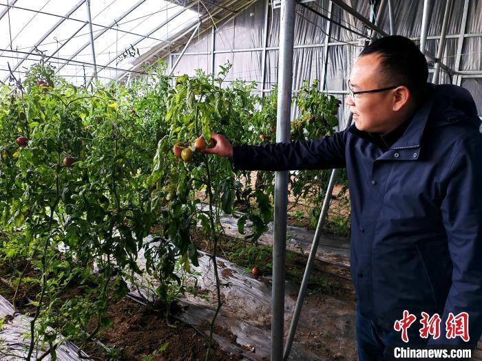 邵长磊介绍番茄生长情况。谷华 摄