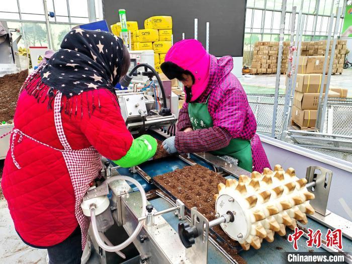 51岁的张美英是一位经验丰富的播种工,她家里的几亩地都流转给产业园,自己在育苗基地打工,一个月能拿到3000多元工资。