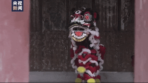 举起狮头,披上狮帔舞狮