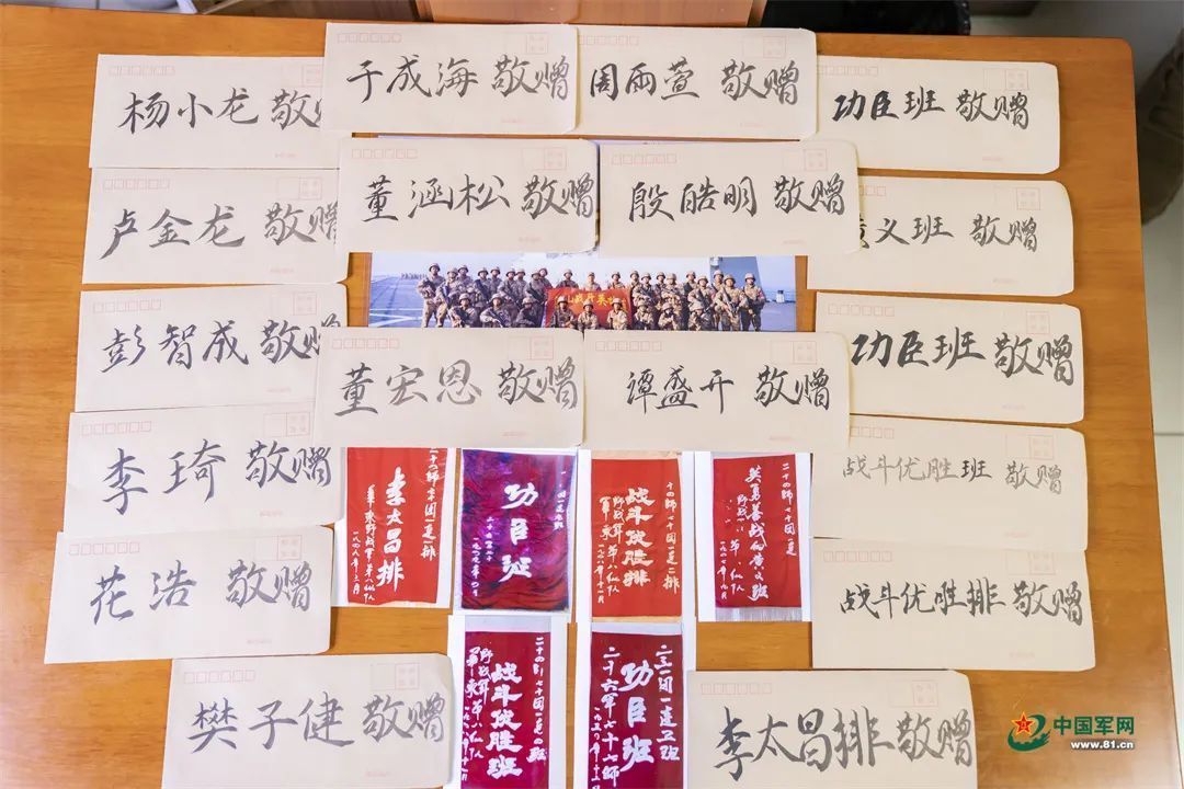 连队战士赠送给周全弟的手写信及合影。唐瑞杰 摄