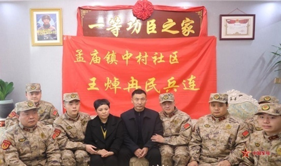 王焯冉父母与“王焯冉民兵连”民兵代表合拍全家福。王士刚 摄