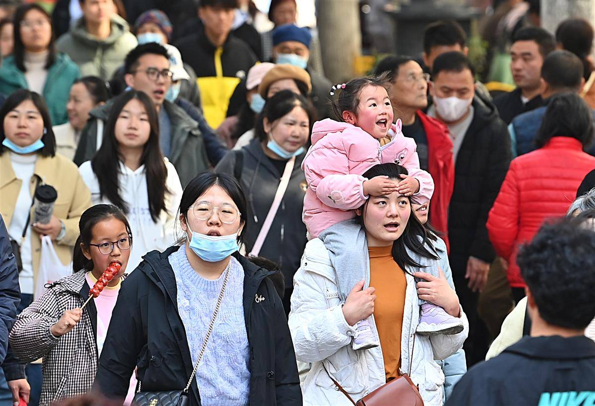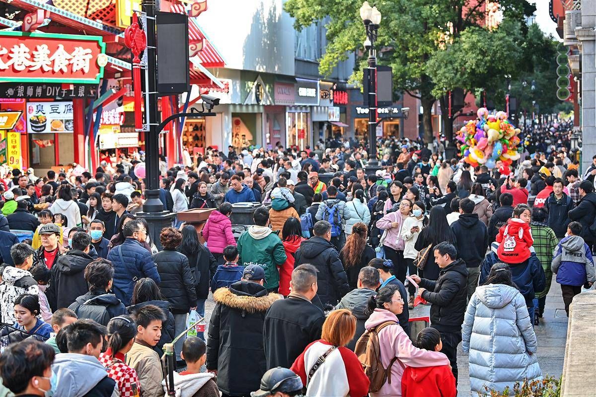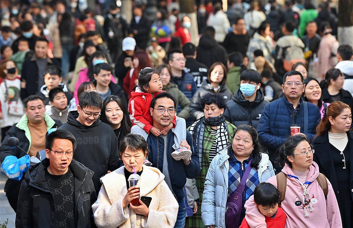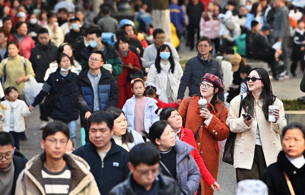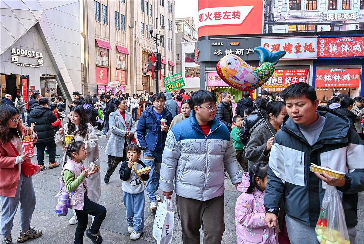 2月16日,武汉阳光明媚,汉口商业百年老街江汉路步行街热闹,繁华,人们在喜气洋洋、欢快热烈的气氛中,过一个欢乐祥和平安的春节。(湖北日报全媒记者 朱熙勇 摄)