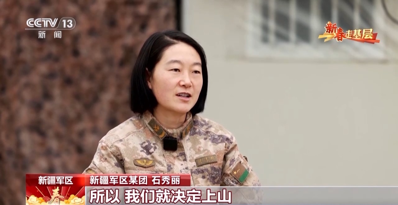 新疆军区某团 石秀丽:领导劝我们就是不要上山,毕竟我俩都结婚了,考虑到我们要孩子啥的。但是我作为骨干的话,我不可能说让她们上,我在下面留着这样,所以我们就决定上山,就是这样。