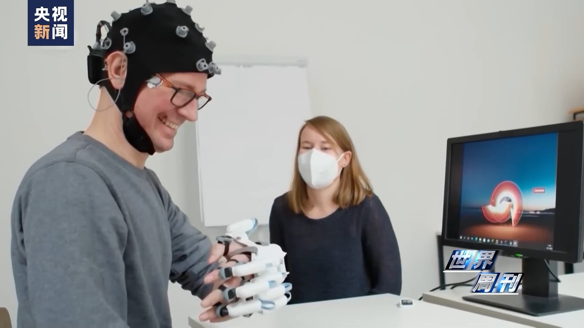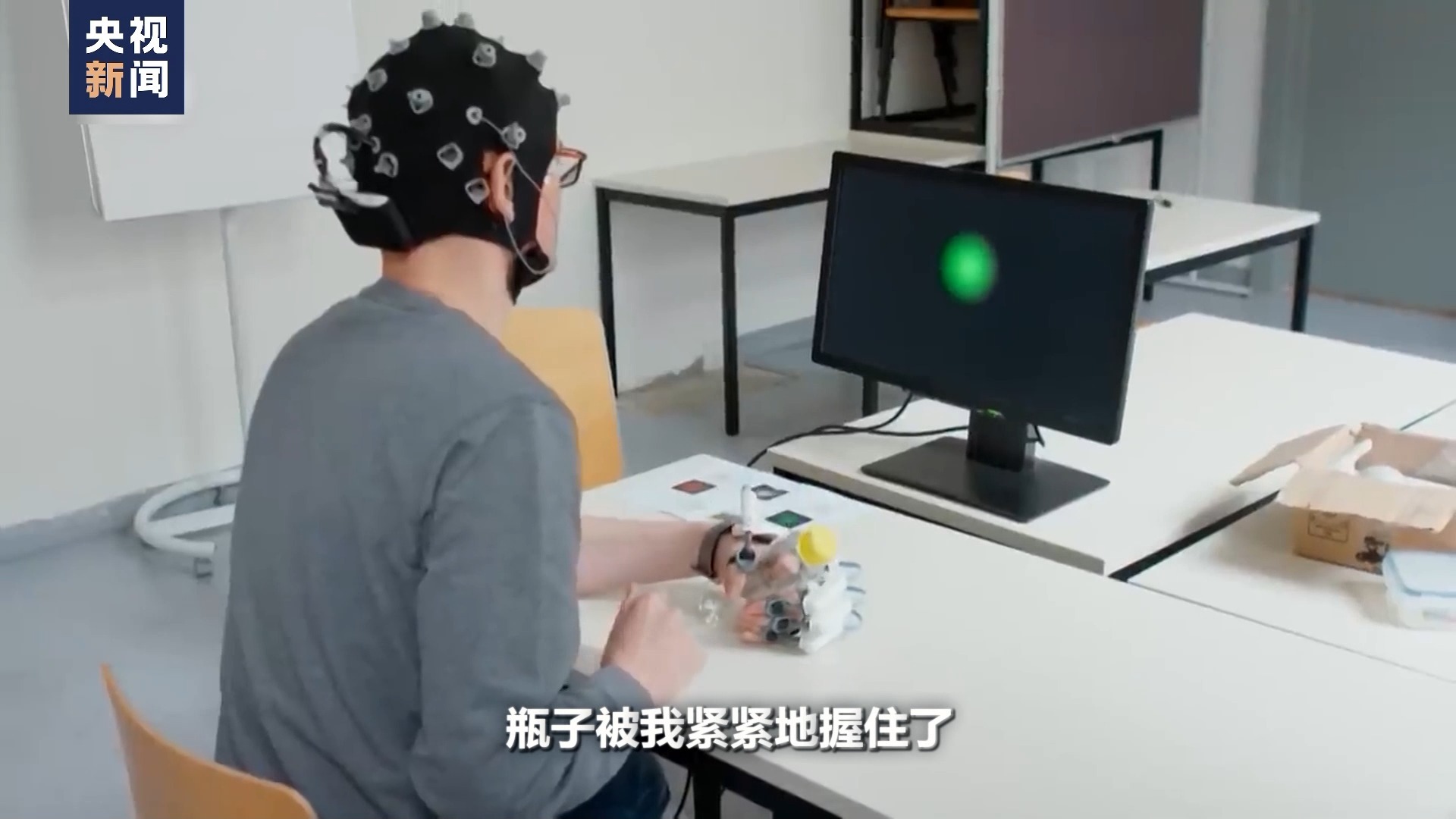 要想让“手外骨骼”顺畅工作,舒尔茨还需要戴上一顶特殊的“帽子”。