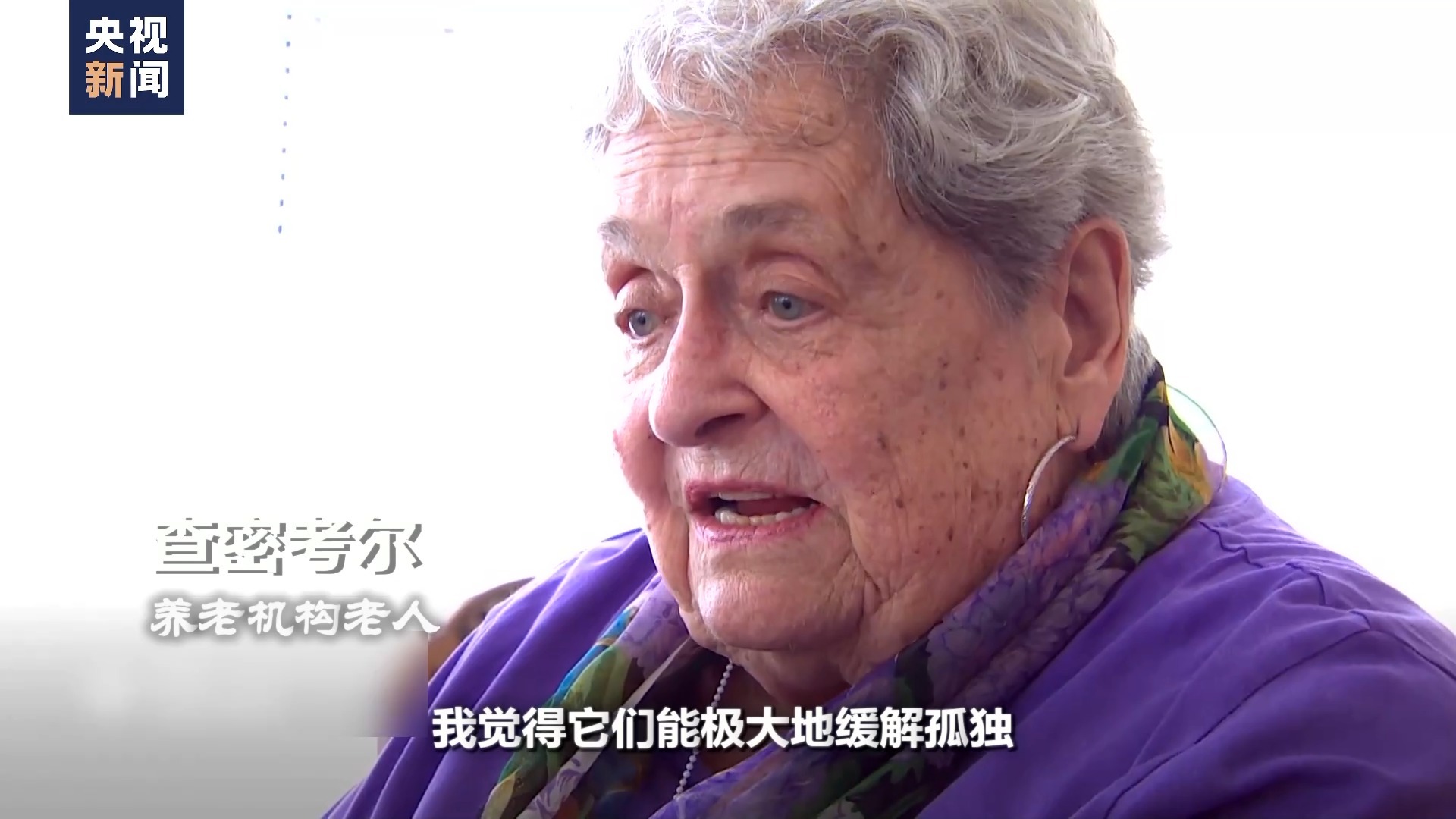 养老机构老人 查密考尔:我觉得它们能极大地缓解孤独,我不能经常见到孩子们,但每天上午都可以跟它们聊天。