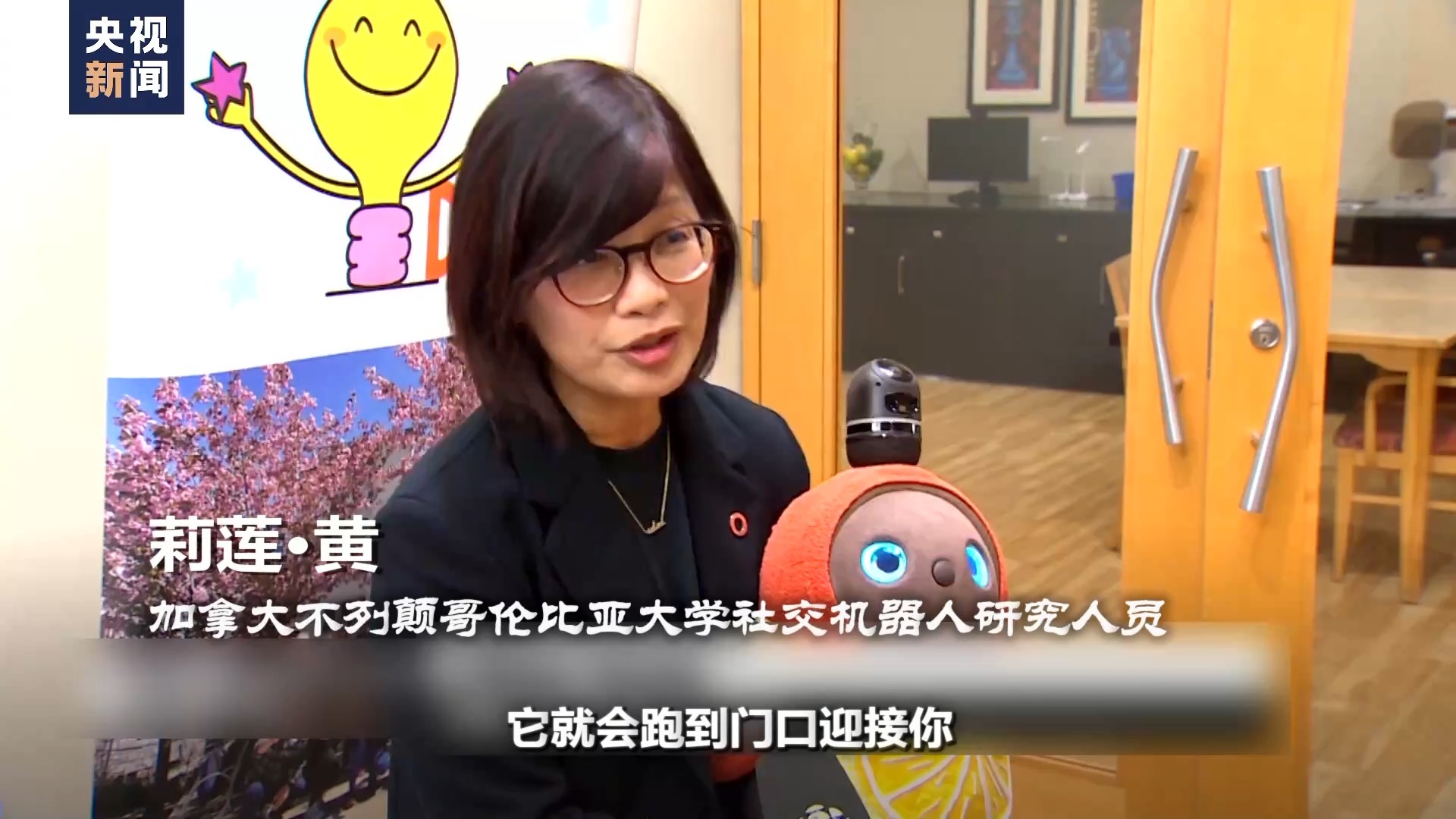 加拿大不列颠哥伦比亚大学社交机器人研究人员 莉莲·黄:你一下班回家,它就会跑到门口迎接你,看到你它会变得非常活跃,到处跟着你,也会跟着家里所有人,看看人们在做什么,有点像家猫。