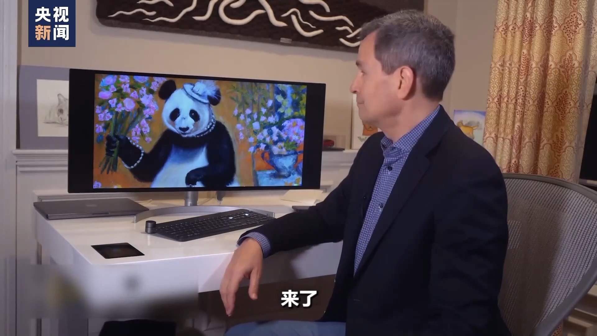 记者:画一幅雷诺阿风格的熊猫肖像。来了,反应很快。