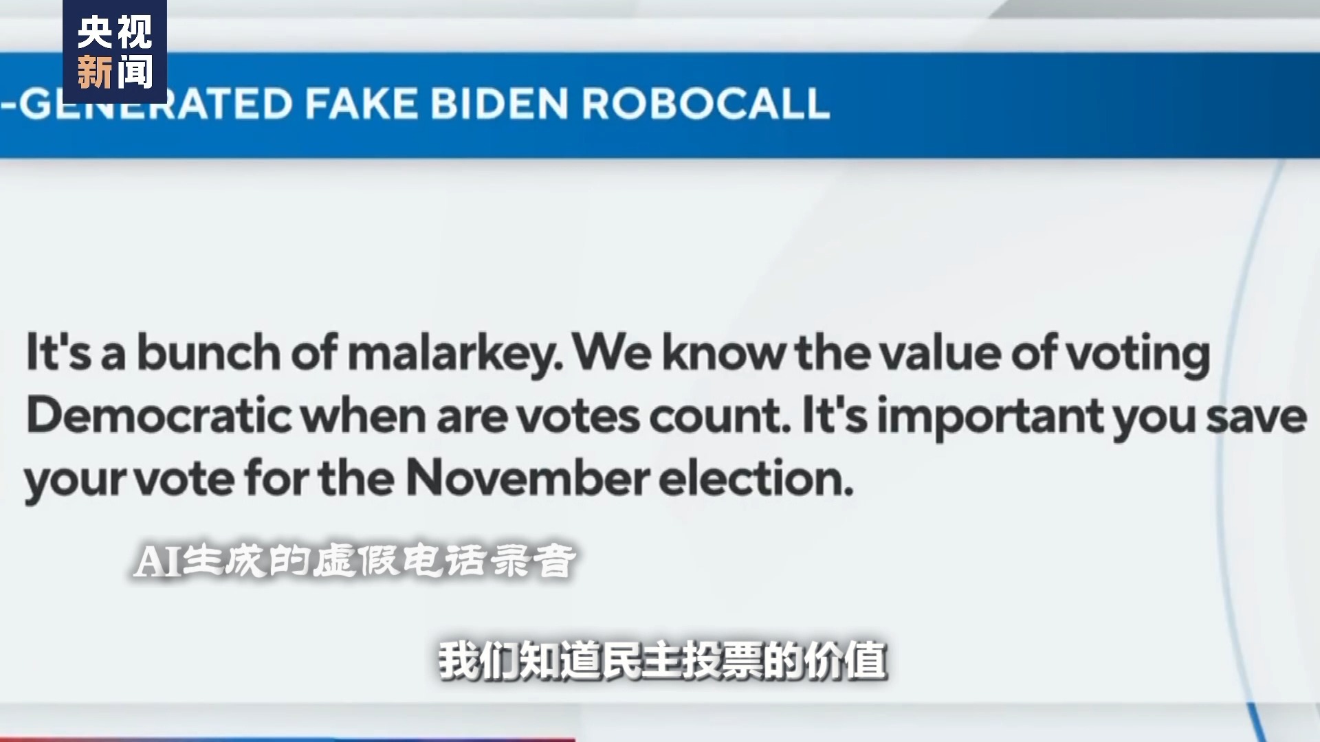 AI生成的虚假电话录音:真是一派胡言,当计算选票时,我们知道民主投票的价值,你把选票留到11月的大选很重要。