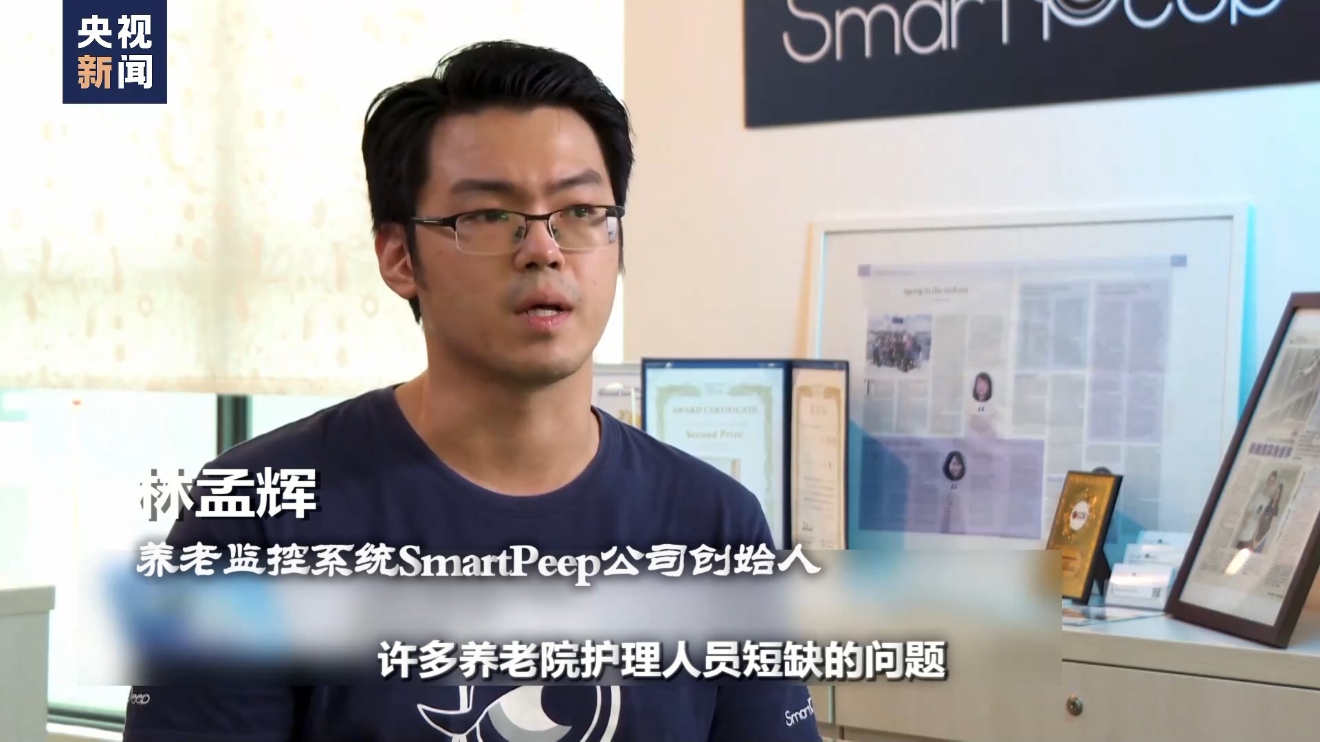 养老监控系统SmartPeep公司创始人 林孟辉:我们正在努力解决许多养老院护理人员短缺的问题。因为很多摔伤事件发生,很多严重的摔伤,甚至是患阿尔茨海默病的老人从养老机构失踪,都是因为没有足够多的护理人员来照顾老年人。
