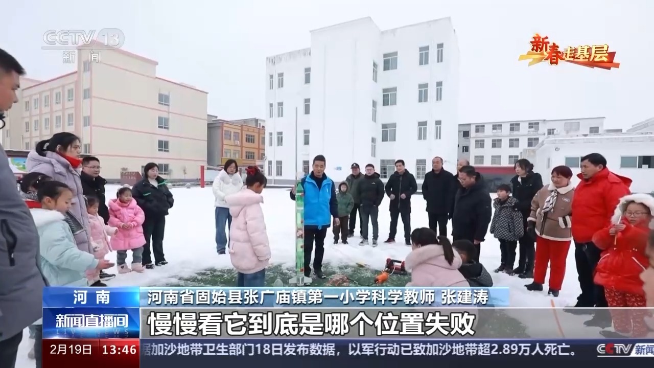 河南省固始县张广庙镇第一小学科学教师 张建涛:每次失败你要记录,要拍下来看,慢慢看它到底是哪个位置失败,我给自己计算过了,每天中午我都要发射3次到5次,做实验孩子们会围着你。好像自己的小弟弟小妹妹一样,他们围着你,时间久了,感觉跟他们心灵好像有个交汇一样,能感触到孩子们喜欢这些东西,他们需要这些东西。
