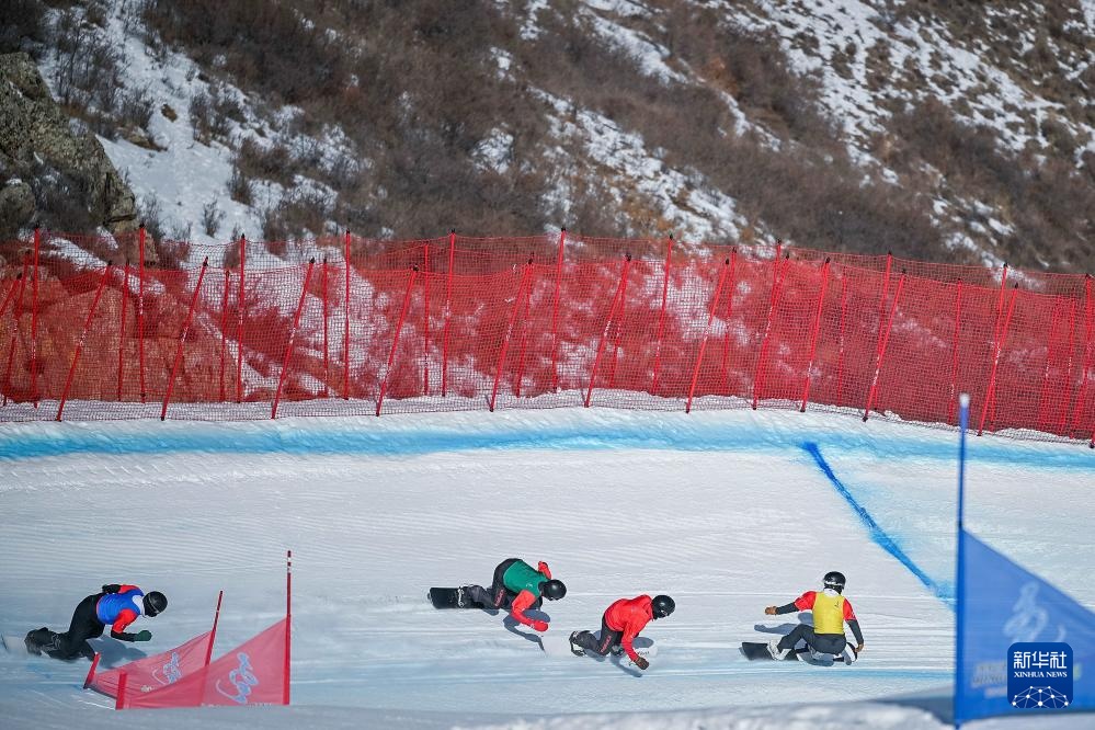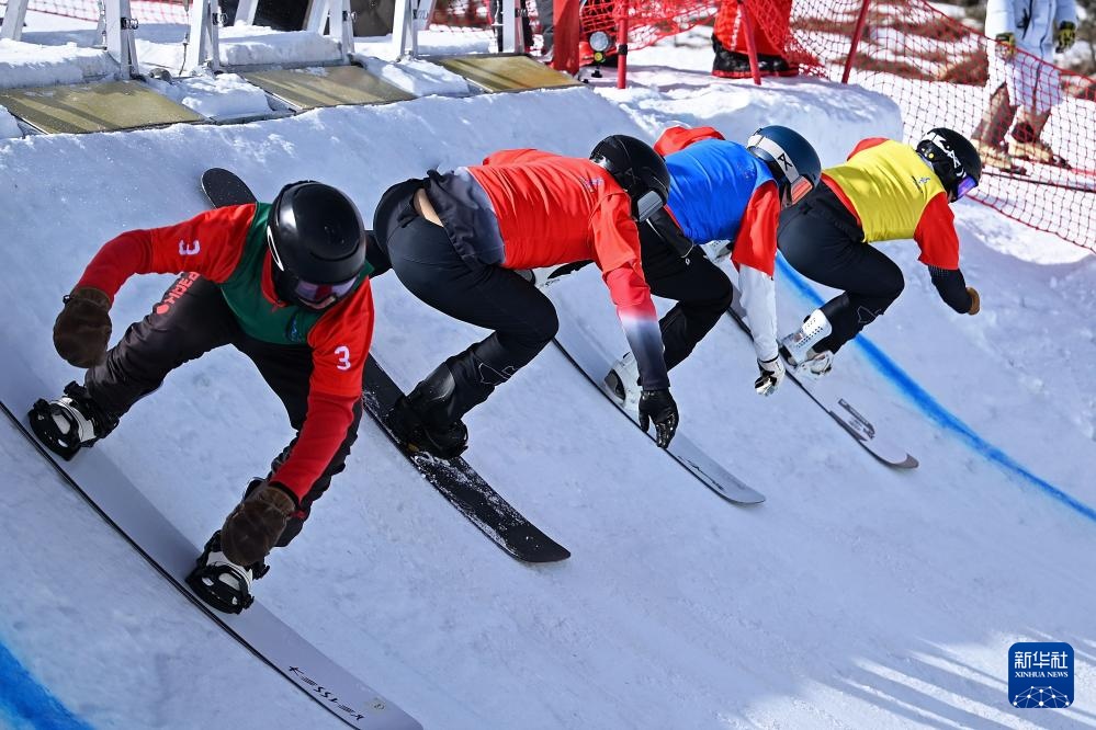 2月19日,上海队选手高大礼、山西队选手张彬、内蒙古队选手李柯新和吉林队选手叶康佳(从左至右)在比赛中。新华社记者 陈振海 摄