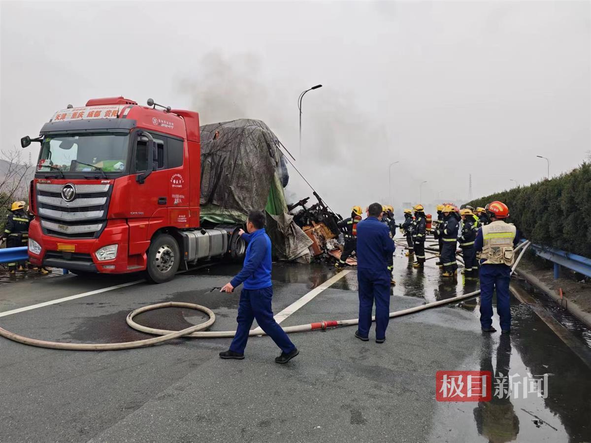 2月19日11时25分许,在G70福银高速十堰段往武汉方向K1355+200处,发生一起大型半挂货车起火自燃事故。事发后,湖北交投鄂西北运营公司第六综合巡检办迅速启动突发事件应急处置预案,紧密联合高警、路政、消防、养护、施救等一路多方各单位,迅速赶赴现场开展救援及保畅工作。