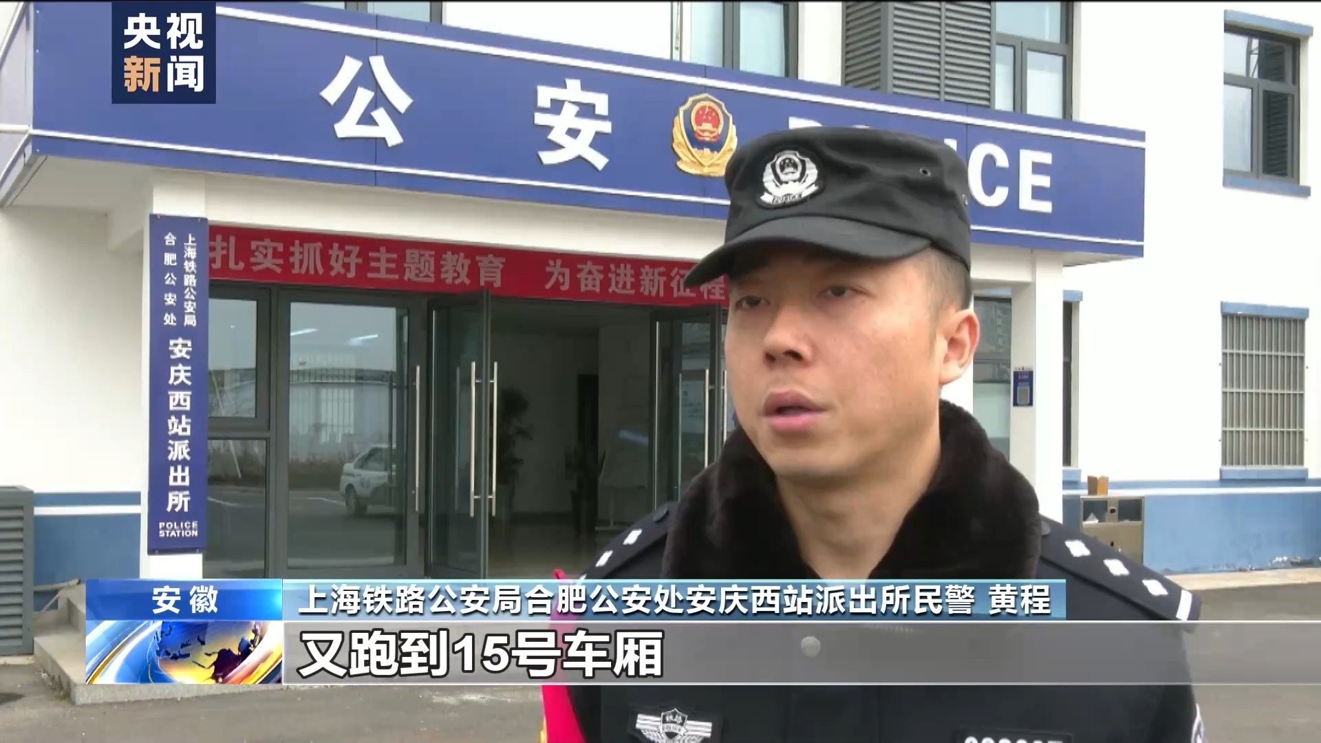 上海铁路公安局合肥公安处安庆西站派出所民警 黄程:这名犯罪嫌疑人又跑到15号车厢,盗窃了一部手机。