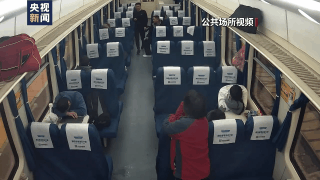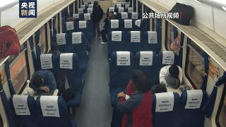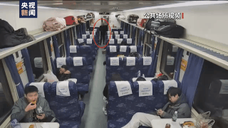 2023年12月20日,T222次列车上的公共场所视频显示,案发时,夜色已晚,不少乘客都在自己的座位上休息。这时,有一名男子在过道内来回走动,似乎在寻找着什么。没过一会,他突然俯身拿走了一名熟睡旅客的手机,并快步离开了现场。