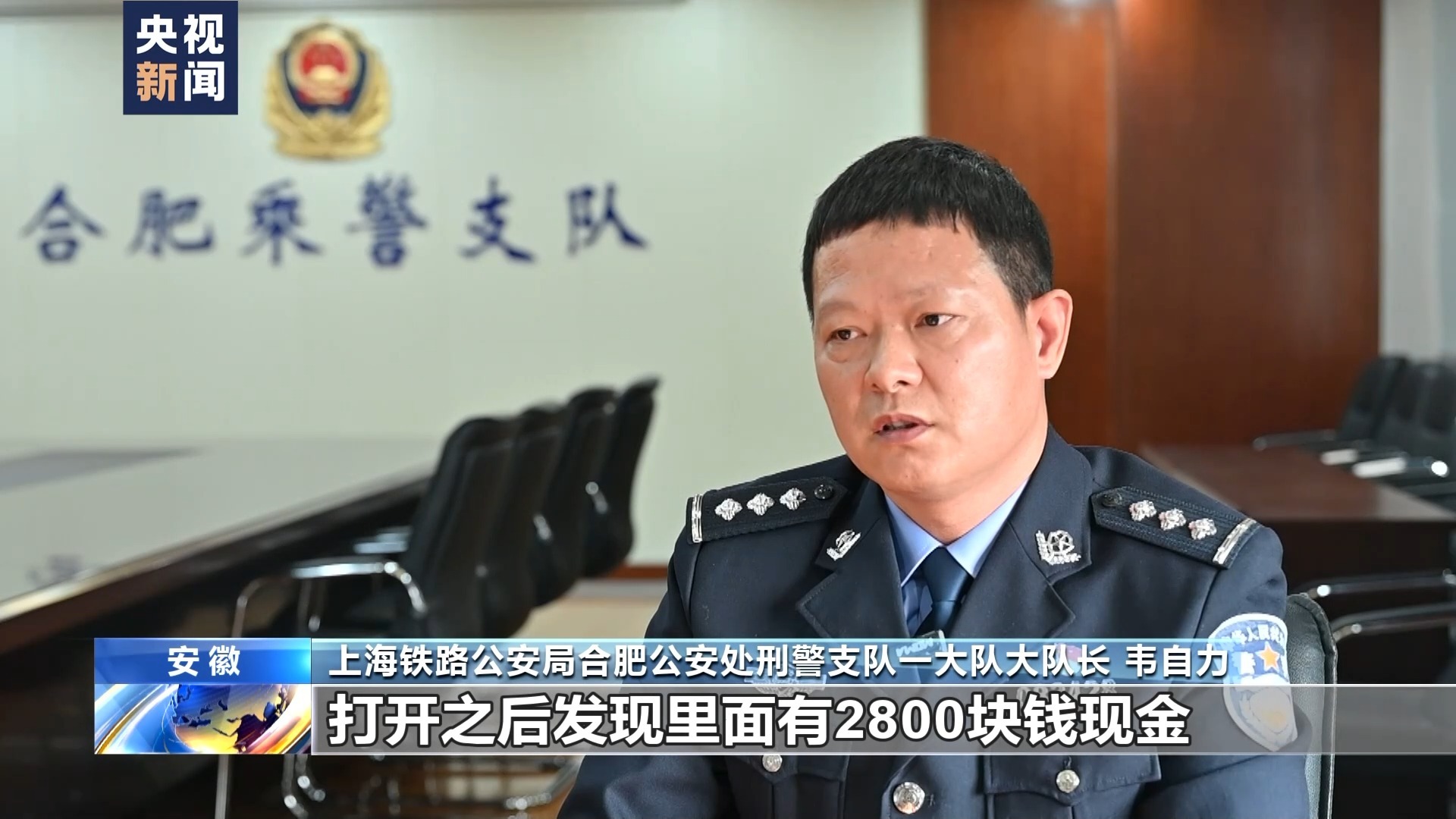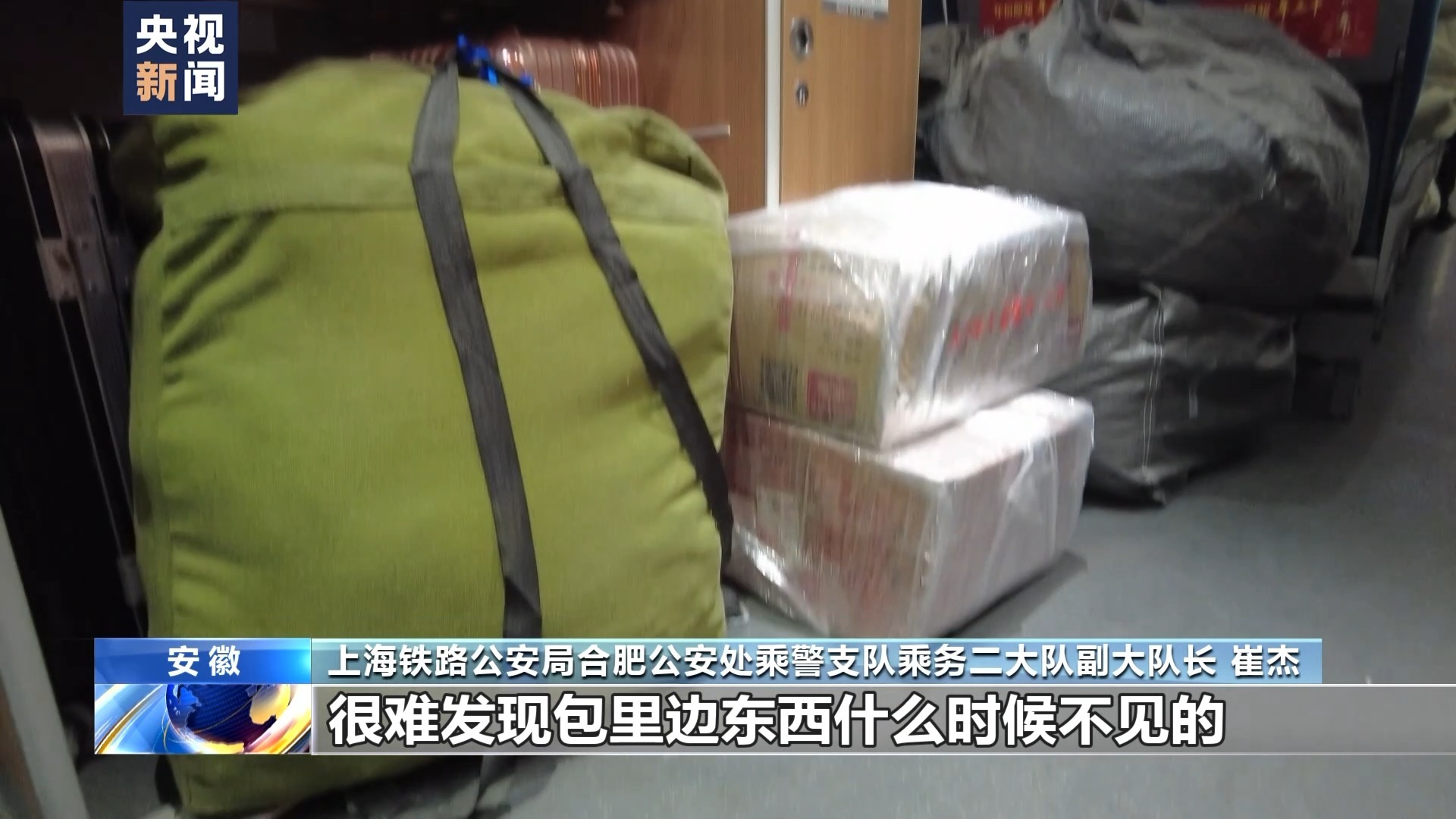 上海铁路公安局合肥公安处刑警支队一大队大队长 韦自力:合肥铁路警方提醒广大旅客,贵重的物品或现金一定要随身携带,如果没有办法做到随身携带,放在包里或者行李箱里的时候,也要把行李箱或者背包放在自己的视线范围之内。