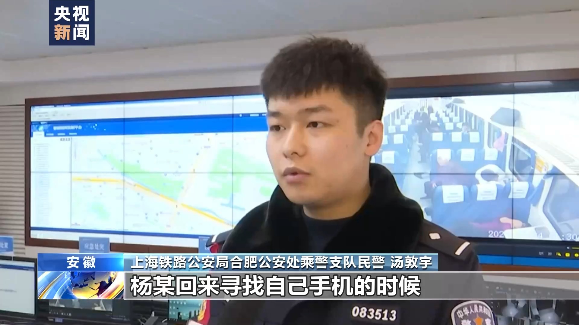 上海铁路公安局合肥铁路公安处乘警支队民警 汤敦宇:她刚把手机拿走几秒钟,报案人就回来寻找自己的手机。杨某回来找自己手机的时候,她一直在假装睡觉,并没有把手机还给当事人。