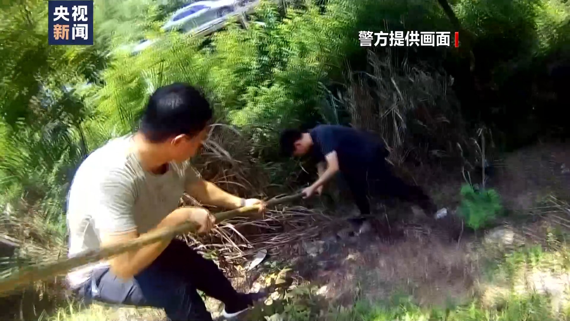 了解到情况后,民警带着潘某来到了他扔行李箱的大致区域,开始了“巡山找箱”的搜寻工作。最终,在一处深山沟下,民警找到了小郭被盗的行李箱。