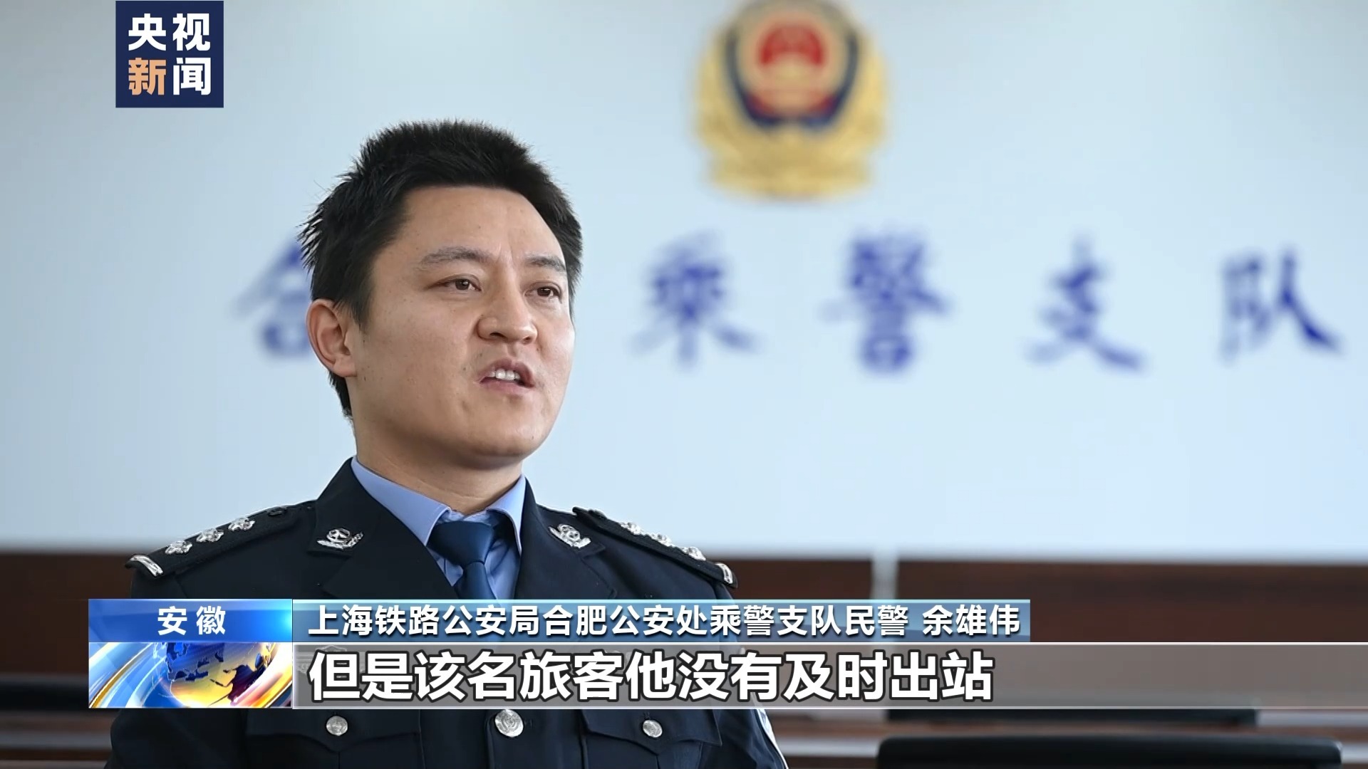 上海铁路公安局合肥公安处乘警支队民警 余雄伟:返回上饶的列车上有视频,该旅客上车之后躲在厕所内将近25分钟一直没有出来。直到列车快到上饶时,他才从厕所里面出来,匆忙下车出站。