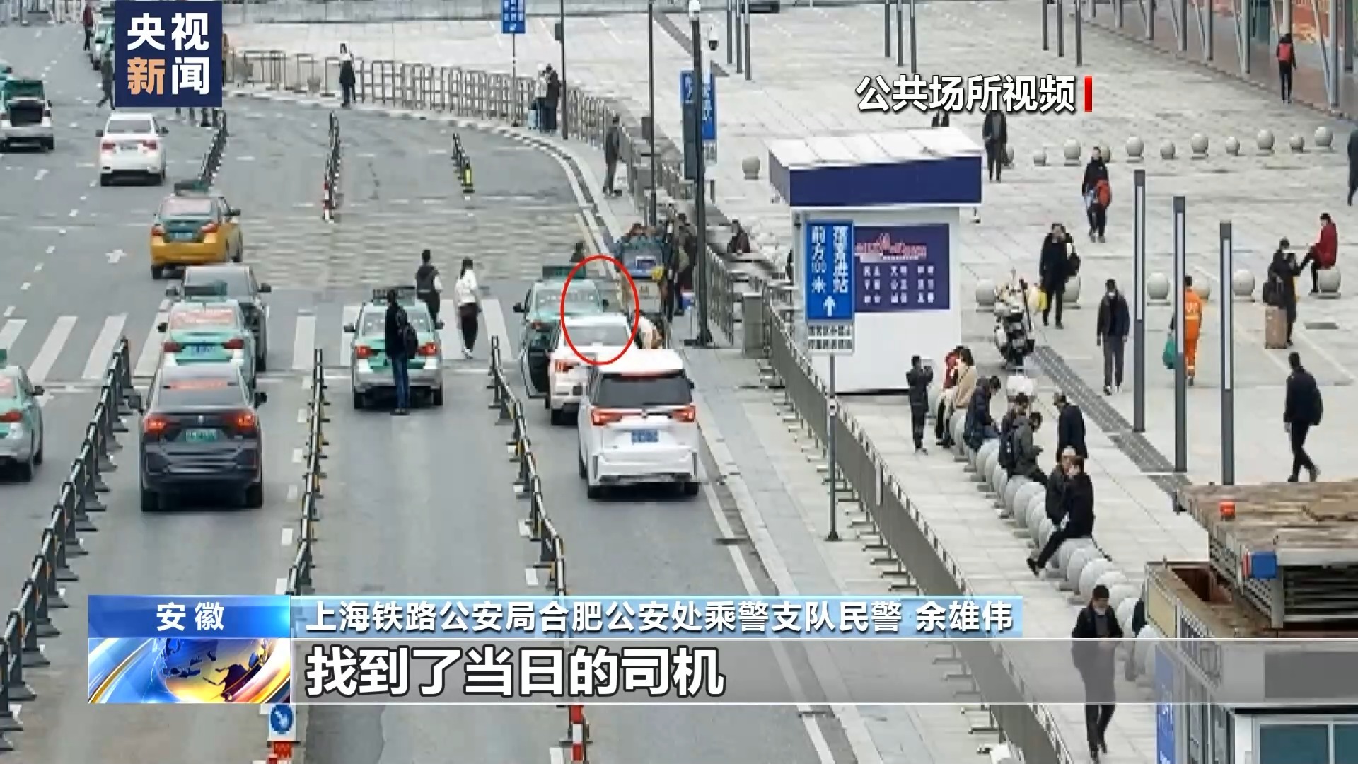 上海铁路公安局合肥公安处乘警支队民警 余雄伟:通过该出租车的车牌号码,找到了当日的司机,通过对司机进行询问,得知该旅客到达了某小区。下车之后他在回家的途中,刚好小区门口有视频,清晰拍到了他的面部特征。