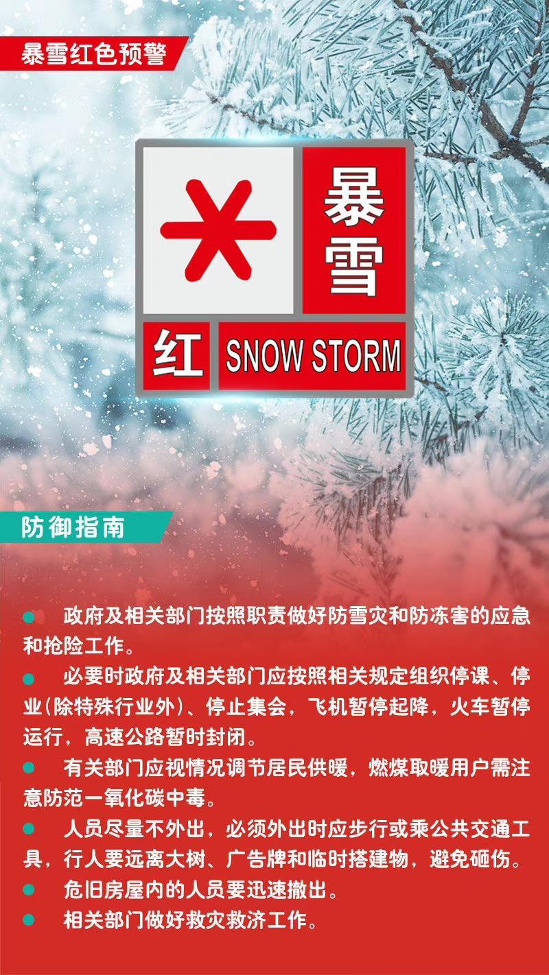 开封市气象台2月20日17时3分将暴雪橙色预警升级为暴雪红色预警:预计未来6小时,龙亭区、顺河回族区、鼓楼区、禹王台区、城乡一体化示范区、祥符区等全部乡镇和街道降雪量将达15毫米以上。