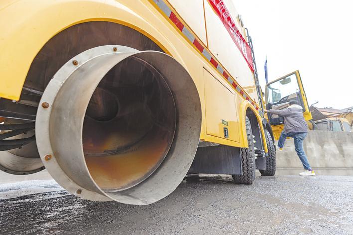湖北日报讯 (记者戴辉、通讯员粟秋雯、刘伍华)“嗡……”随着类似飞机发动时的巨大轰鸣声,一辆12米长的黄色车辆两侧喷管喷出的高速热流,将路面的“积雪”一吹而空。2月20日,记者在京港澳高速武汉南收费站内的湖北交投建设集团养护片区看到这样一幕。