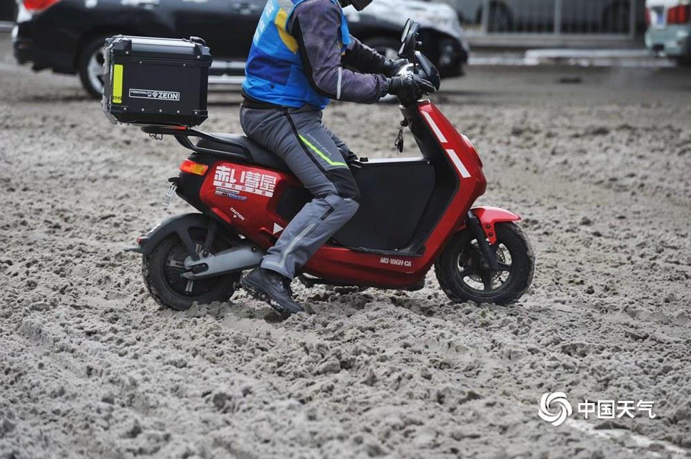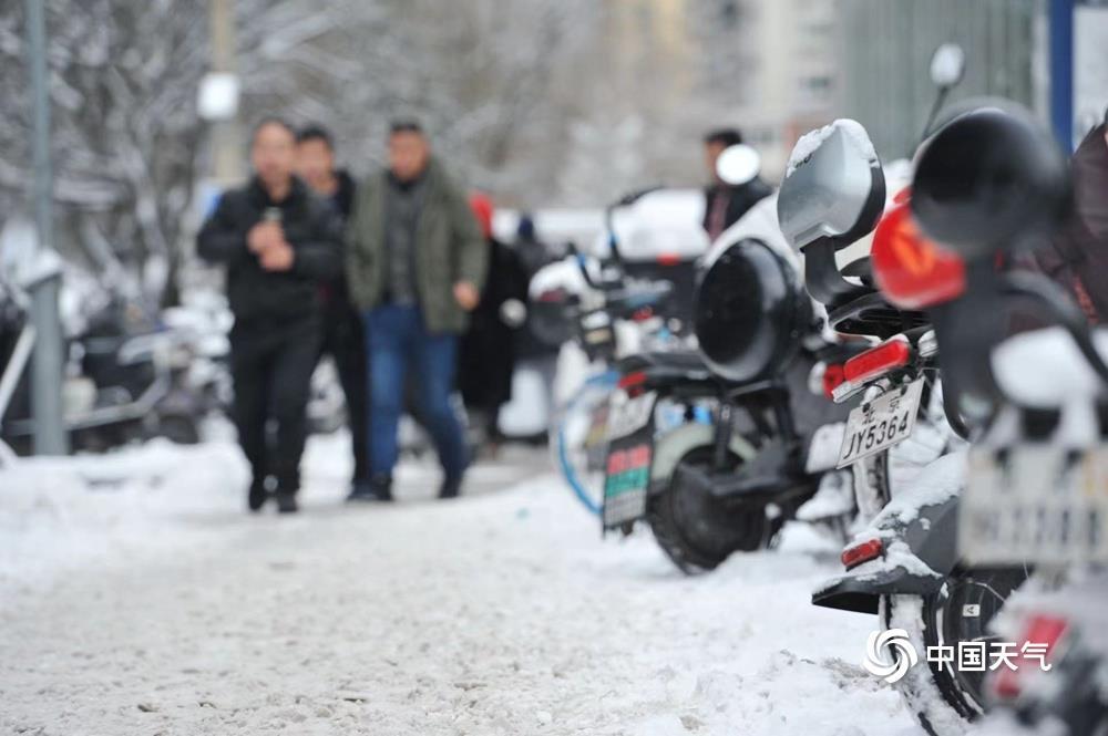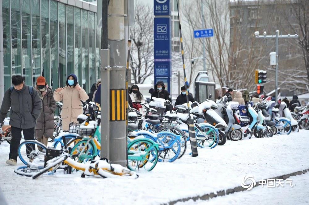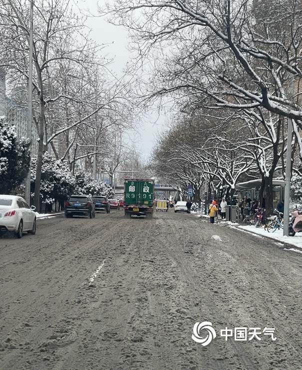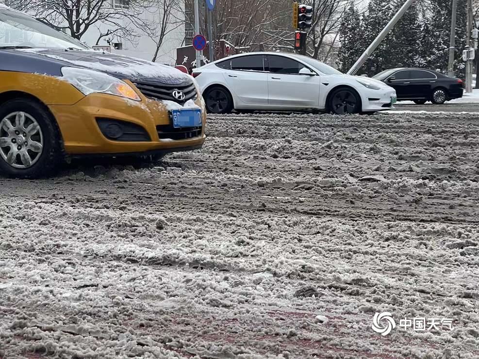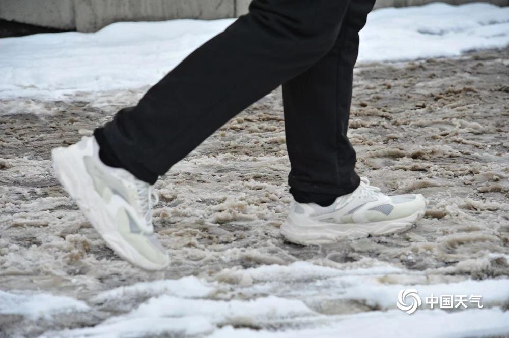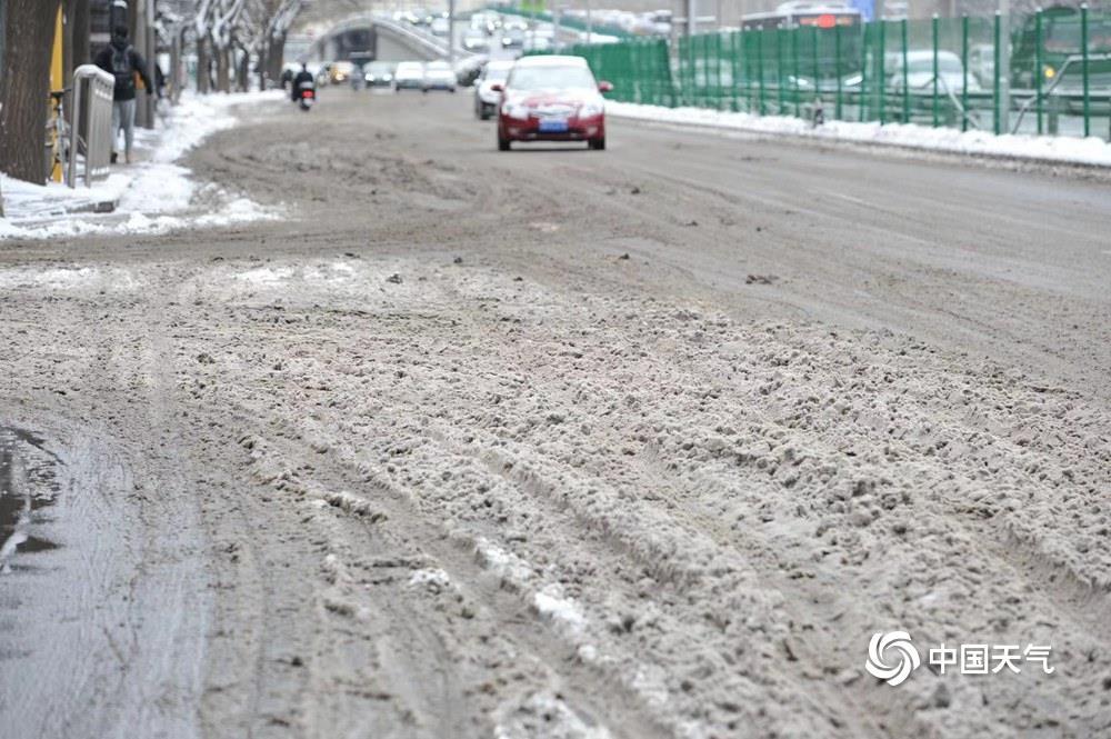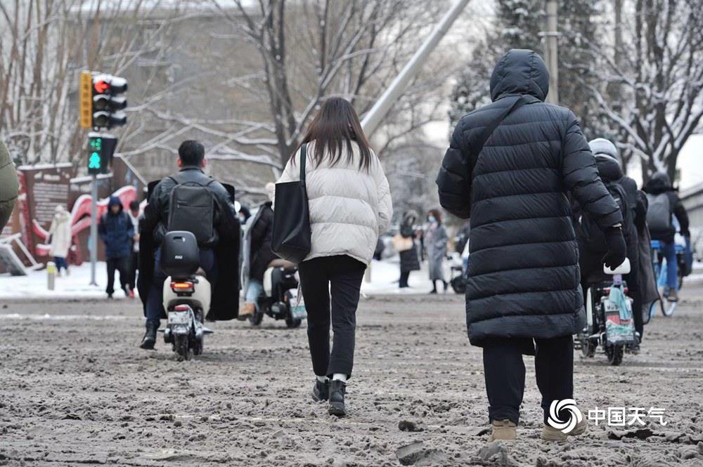 昨天(2月20日)北京出现中到大雪,今晨城区道路积雪明显,行人纷纷减速慢行。目前道路结冰黄色预警信号仍在生效中,公众外出注意出行和交通安全。
