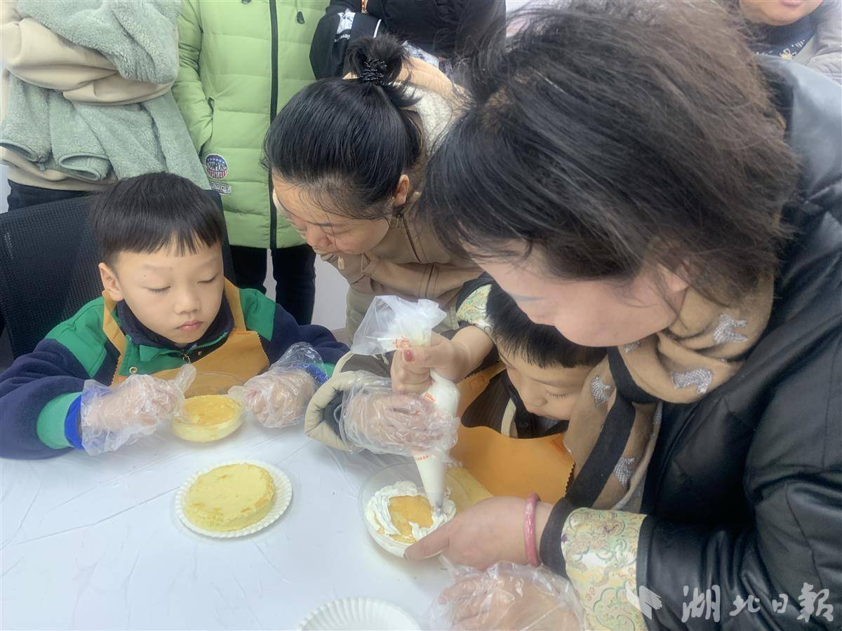看!孩子们兴致勃勃,享受沉浸式制作蛋糕的欢乐氛围。忙活了一个多小时,一个个新鲜的奶油蛋糕出炉,大家品尝着自己亲手制作的蛋糕,高兴得合不拢嘴。孩子们带着自己的作品回家,和家人分享节日的快乐。“到家后,我要第一时间把自己制作的蛋糕分享给爸爸妈妈。”8岁的晏泽宇说。