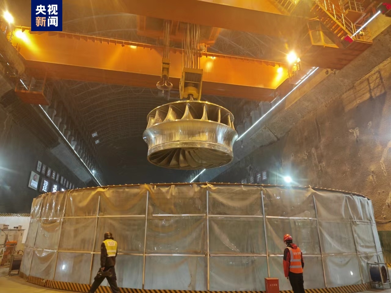 作为整个机组的核心,转轮将水能转换为轴的旋转机械能,并通过水轮机主轴传递给发电机主轴及转子,决定着水轮机的过流能力、水力效率及机组运行的稳定。此次转轮吊装各环节无缝衔接,吊装精准安全就位。