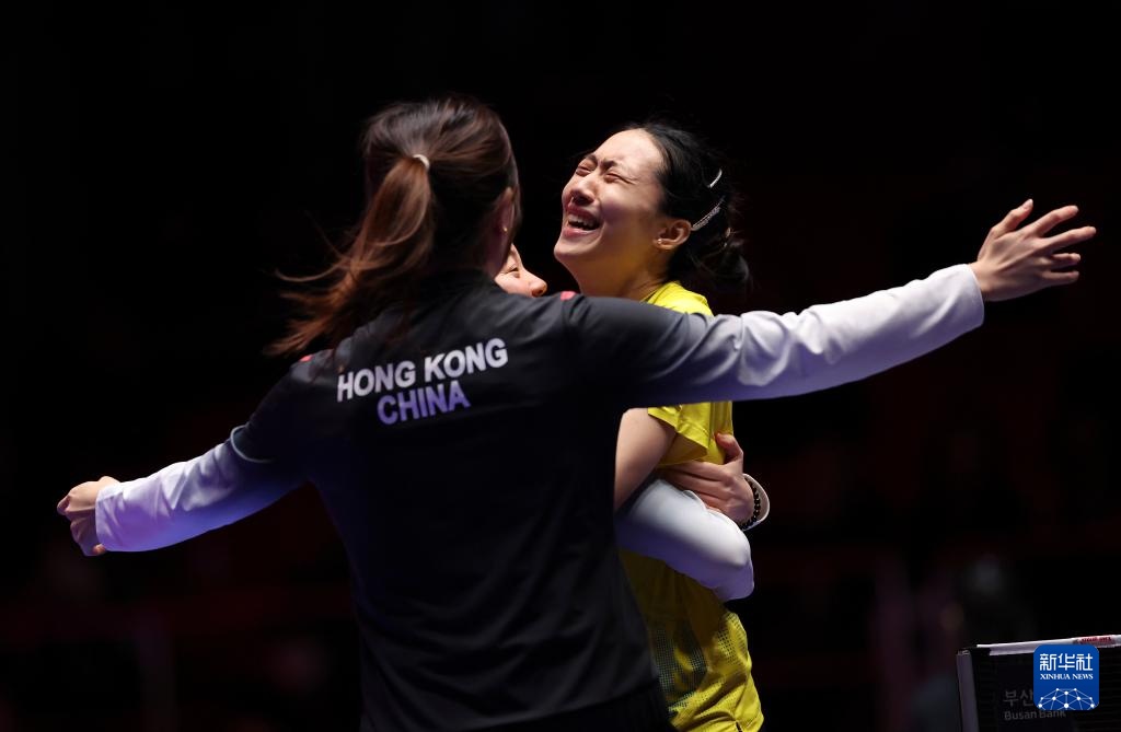 当日,在韩国釜山进行的2024年国际乒联釜山世界乒乓球团体锦标赛女子团体四分之一决赛中,中国香港队3比2战胜中国台北队,晋级四强。