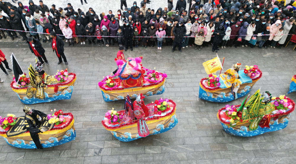 2月22日,河北省遵化市东旧寨镇石桥头村的民间艺人在表演民俗节目。新华社发(刘满仓摄)