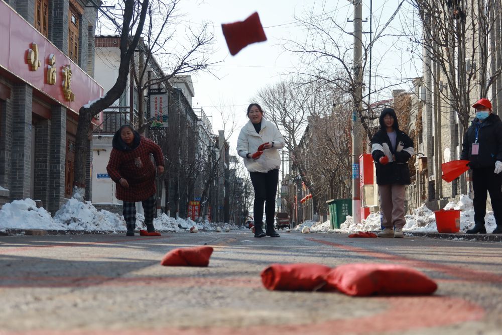 2月22日,村民在河北省邯郸市邯山区河沙镇镇南街村参加投沙包比赛。新华社发(胡清华摄)