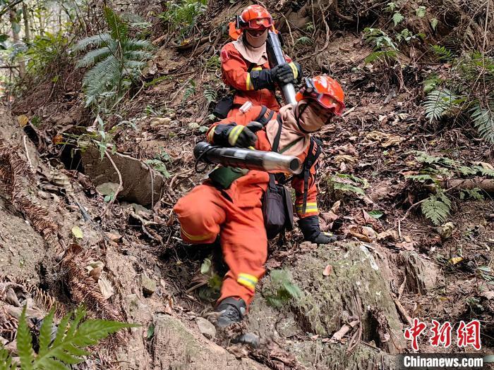 消防员翻山越岭奔赴火场。国家消防救援局广西机动队伍供图