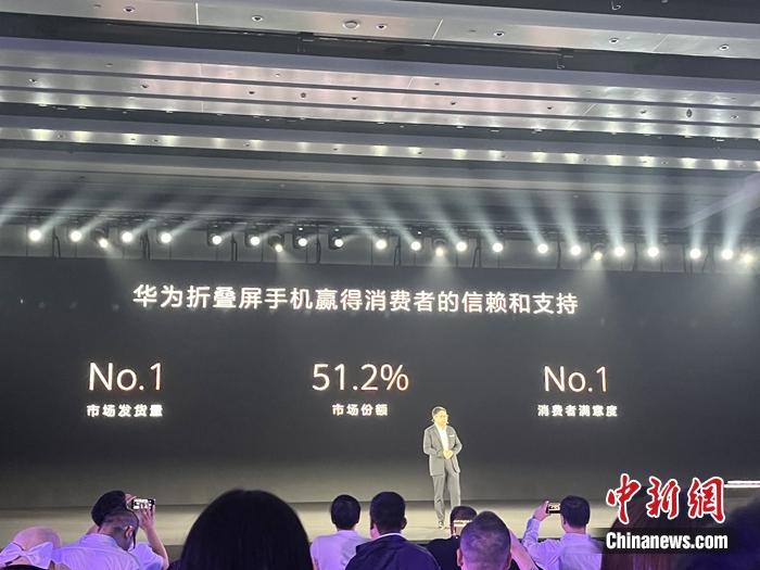 华为常务董事、终端BG CEO、智能汽车解决方案BU董事长余承东在发布会上称,“华为折叠屏市场发货量做到第一名,市场份额达到51.2%,关键消费者满意度也是第一。”