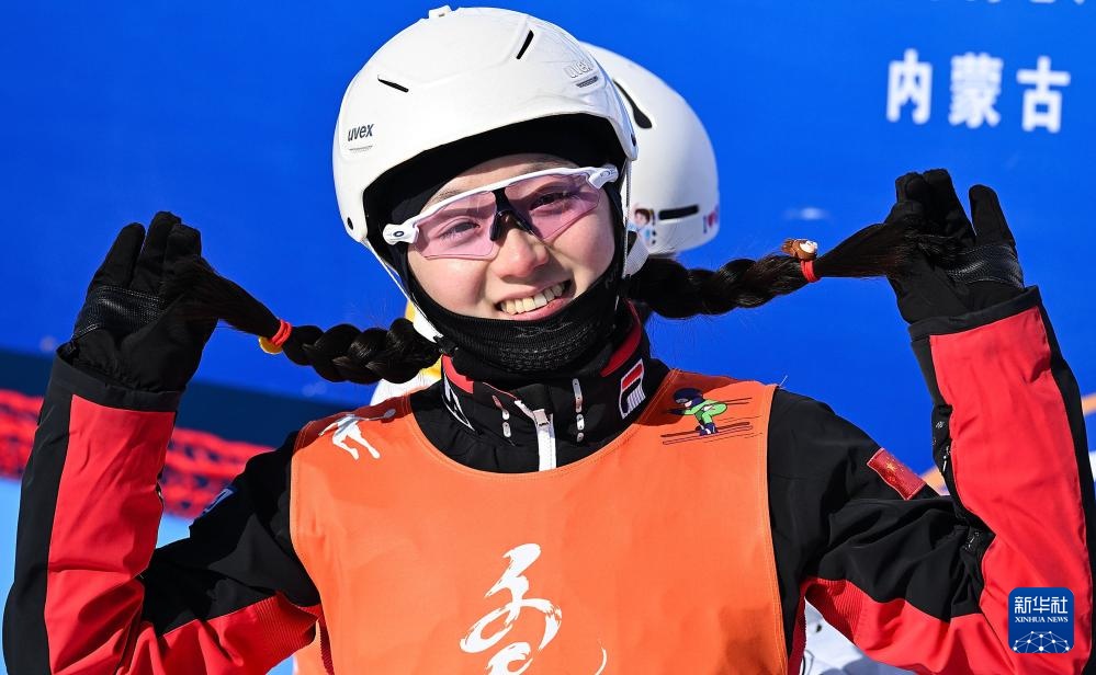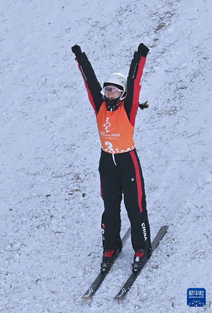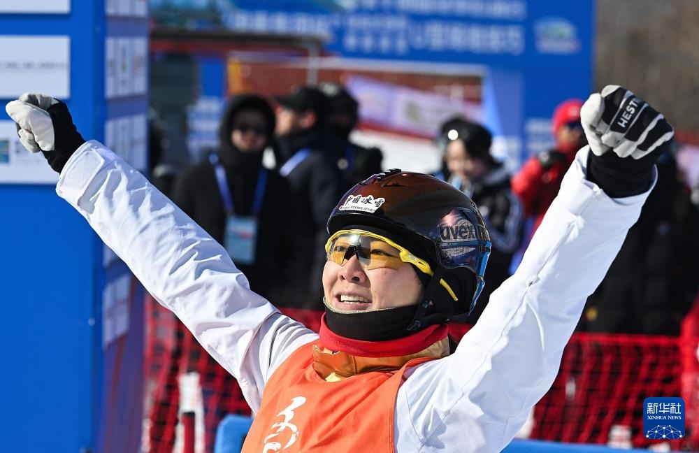 2月23日,内蒙古队选手邵琪在比赛结束后庆祝。新华社记者 杨冠宇 摄