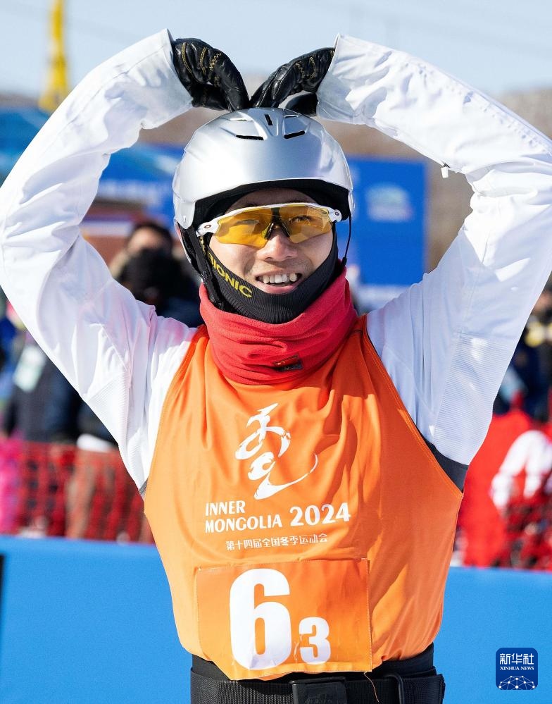 2月23日,内蒙古队选手杨龙啸在比赛中庆祝。新华社记者 谢剑飞 摄