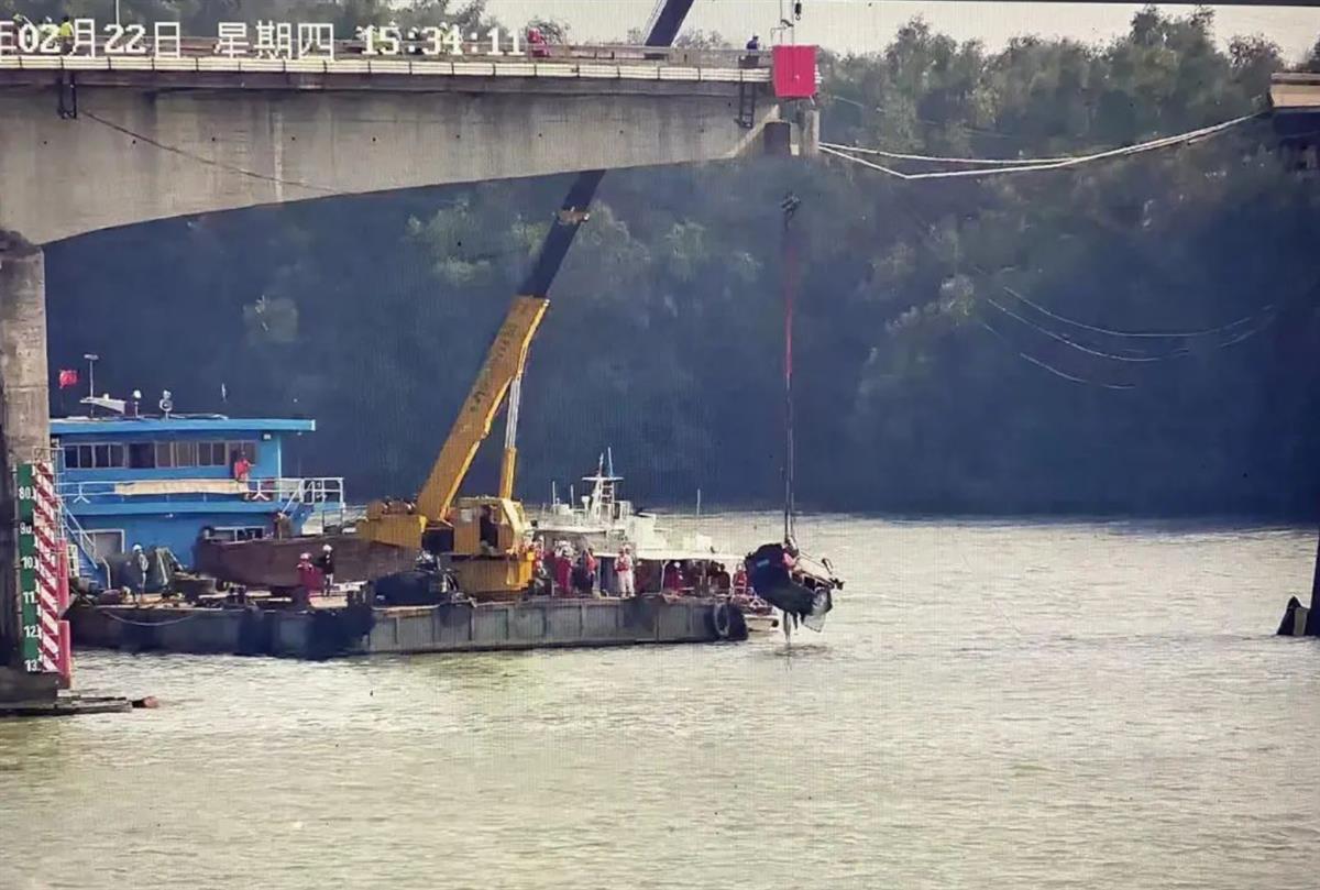 当天清晨5时31分左右,轮船“良辉688”撞上沥心沙大桥桥墩,桥面断裂滑落后,4辆车和1辆电动摩托车从断裂处坠落。