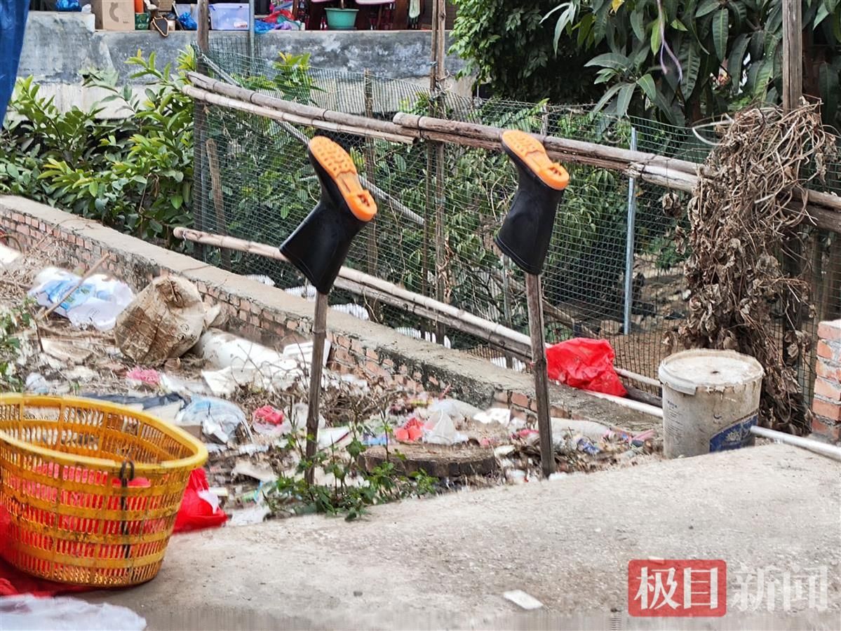 家禽档的帐篷外,两枝木棍架着一双塑料长靴,静静地晒着太阳。但长靴的主人,再也不会回来。